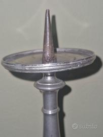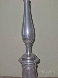 Candelieri in ottone argentato, epoca 1800. Altezza cm 33, peso cad. 1 kg. Ben tenuti