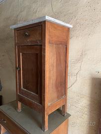 Due antichi comodini retro’ in buone condizioni con ripiano 1 in marmo e 1 in vetro..cassetti e ante apposto ..50€ tutti e due