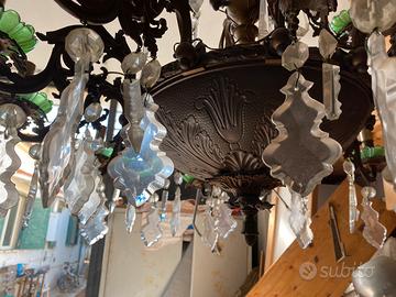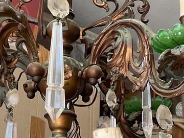 Svendo causa trasloco+inutilizzo due lampadari antichi in ottone, elettrificati anni 90, quello grande (molto sfarzoso anche se dalla foto non si evince) con gocce di cristallo a 80€ e l’altro con calotta in vetro 20€