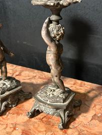 Coppia di Portacandele in Bronzo con Putti Fine Ottocento