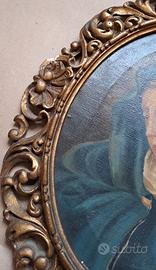 Antichi quadri ad olio a tema religioso con riproduzioni della Madonna e di Cristo con cornice in pasta di gesso dorata. La cornice della Madonna necessita un restauro. Databili intorno al 1930.