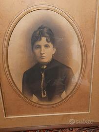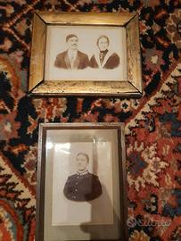 Antichi ritratti fotografici incorniciati. Grande ritratto di signora 67 cm x 81 cm, ritratto di uomo con i baffi in cornice rossa e nera 42 cm x 58 cm, ritratto di coniugi in cornice nera 33 cm x 27 cm, ritratto di soldato in cornice in legno 13 cm x 18 cm e ritratto di coppia in cornice dorata 14 cm x 18 cm. Prezzo per l'intero lotto. Le cornici presentano mancanze e segni dovuti all'età. Vendo a Mogliano Veneto con ritiro di persona, non effettuo spedizione.