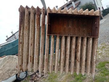 Termosifoni con scalda vivande invirporato. Sono due antichi termosifoni , Accorpati in uno. 10 elementi quello con scaldavivande, 5 elemti quello accorpato leggermente più stretto. epoca anni 20. Peso complessivo oltre 200 kg. contatto 3471540628