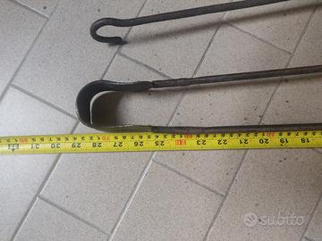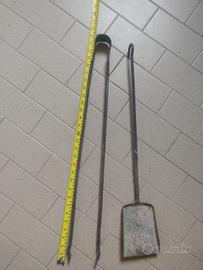 Antichi/Vintage attrezzi per camino (paletta + pinzone) in ferro battuto.