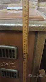 Stufa a legnaSovrana Extra. Si tratta di un modello vintage di riscaldamento d'epoca, spesso ricercato come pezzo da collezione per l'arredamento d'interni. Ecco alcune caratteristiche principali di questo tipo di stufa: Design:Presenta un'estetica classica con un corpo verticale smaltato (spesso in tonalità marroni o verdi), sportellini in metallo per il carico della legna e prese d'aria frontali. Produttore:Il marchio "Sovrana" è storicamente legato alla produzione italiana di cucine economiche e stufe, oggi parte del gruppoLa Nordica-Extraflame.