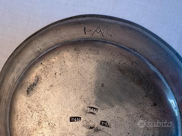 • Presenti sul retro del piatto i punzoni con le lettere I.A.C. e la scritta FIN ripetuta (spesso indicante 'Fine' o il nome del produttore).