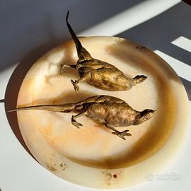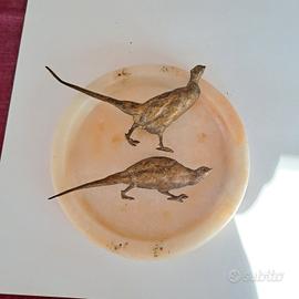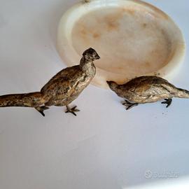 Oggetto d'arredo in alabastro e con fagiani in bronzo. Periodo prima metà Novecento. I fagiani vanno fissati al vassoio. Misure come in foto. Possibilità di ulteriori fotografie. Non è possibile spedizione. Ritiro o consegna, previo appuntamento, in Napoli centro.