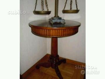 Tavolino in stile antico rotondo con altezza 75 cm e diametro 50 cm in stile impero in noce, con cassettino. ideale per porta lampada tra divani o per angolo. Eseguito negli anni 90. E300.