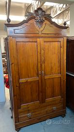 Antico armadio a due ante con cimasa.