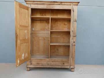 Antico armadio piemontese dotato di due ante frontali intagliate ed un cassetto, realizzato in legno massello di pioppo ed appartenente d’epoca alla prima metà dell’800. Presenta linee più rigide, tipiche dello stile, che si manifestano sulla lineare cornice superiore e sul corpo con dritti montanti. Dispone di una barra appendibiati laterale e ripiani interni. Divisibile in due corpi. Sono presenti fori di tarlo. DIMENSIONI: alt 207 – largh cornice 156,5 – largh corpo 145,5 – prof corn 56,5 – prof corpo 53 cm RITIRO IN SEDE OPPURE CONTATTARE PER UN’EVENTUALE SOLUZIONE PER IL TRASPORTO. E’ NECESSARIO INDICARE PRIMA DELL’ACQUISTO SE LA CONSEGNA E’ DA EFFETTUARE IN ZONA ZTL/CENTRO STORICO O IN UN LUOGO DIFFICILMENTE RAGGIUNGIBILE CON UN FURGONE. Vendita al dettaglio e ai COMMERCIANTI del settore. ATTENZIONE: trattandosi di oggetti vecchi/antichi non è esclusa la possibilità, ed è da tenere in considerazione, che possano mancare piccoli pezzettini e/o che siano presenti buchi di tarlo (ciò garantirebbe l’autenticità dell’oggetto). Si può verificare lo stato generale del mobile dalle foto allegate. SPEDIZIONE: i tempi di spedizione sono di circa una settimana/dieci giorni e variano in base al corriere utilizzato e, ovviamente, al luogo di consegna. Il mobile viene spedito solamente dopo aver ricevuto il pagamento totale dell’oggetto. Non è prevista la consegna al piano ma solamente di fronte all’abitazione/negozio. Confermato l’acquisto, sarà obbligatorio lasciare l’indirizzo di spedizione, un numero di telefono per il corriere e il codice fiscale e/o p.iva per la ricevuta fiscale (equivalente allo scontrino) o fattura. E’ possibile e gradito il RITIRO IN SEDE gratuito presso: GASCO ANTICHITA’ – via Mondovì, 80 – Beinette (CN) – 12081 (a pochi km da Cuneo, casello autostradale Mondovì, Limone, Borgo San Dalmazzo, Boves).