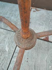antico attaccapanni in ferro battuto e ghisa, con base a tre piedi
