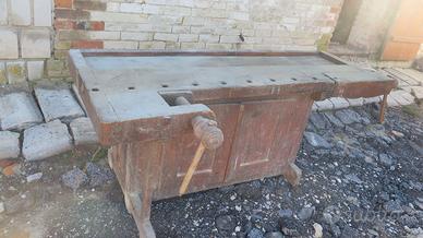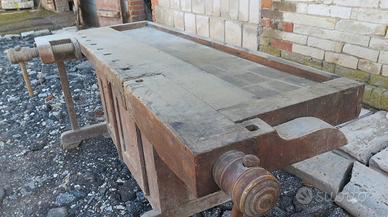 Vendesi banco da falegname in faggio con doppia morsa di cui una angolare. Da rivedere ma ancora utilizzabile per lavoro. Lungo 191cm e profondo 79cm. Trasporto a carico dell’acquirente.