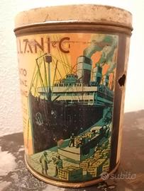 Antico barattolo in latta Paolini Villani, Venezia, anni '20. Il contenitore portaspezie, dalla bellissima patina vintage, ha ancora al suo interno stecche di cannella. Altezza compreso coperchio 17 cm, diametro 13 cm. Prezzo non trattabile. Il barattolo è visibile a Poggio a Caiano (Po). Spedizione disponibile con TuttoSubito.