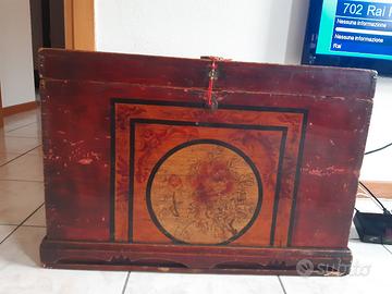 Antico baule cinese dipinto