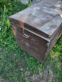 grande baule cassa in legno originale anno 40 con maniglie. il coperchio è staccato ma facilmente riincastrabile. 98 x 64 x 70 cm. legno leggero penso pioppo