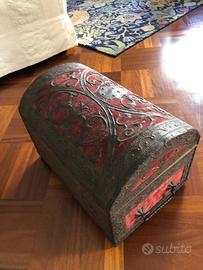 Vendo raro baule monetiere databile tra metà e fine XVIII secolo acquistato in importante casa d'aste romana. Rifoderato internamente. Bellissimo e in ottime condizioni interne/esterne in relazione all'epoca. Adatto come contenitore liquori / mobile bar. Disponibili altre foto/info su richiesta. Solo ritiro a Roma Prati, non disponibile la spedizione. Astenersi non realmente interessati grazie.