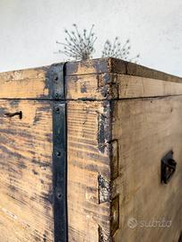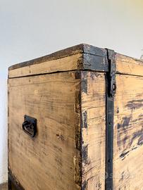 Antico baule in abete completo di tutta la ferramente origiale, compresa la serratura