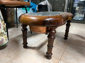 Splendido ed autentico bidet da camera d'epoca (noto anche come bidet da viaggio), risalente tra la fine del XIX e l'inizio del XX secolo. Un pezzo di rara reperibilità, perfetto come oggetto da collezione o come elemento d'arredo unico per bagni in stile classico, rustico o industrial chic. Caratteristiche principali: • Struttura: Base a quattro gambe tornite in legno massello, sagomata per accogliere perfettamente il bacile. • Bacile: Vasca originale in rame con interno stagnato, dotata di anello metallico per facilitarne l'estrazione e la pulizia. • Design: Linee eleganti e sinuose, tipiche del design funzionale dell'epoca. • Condizioni: Ottime condizioni strutturali. Il legno presenta una bellissima patina naturale e il rame mostra i segni del tempo che ne certificano l'autenticità. Non è stato restaurato per preservarne il fascino originale. Idee d'arredo: Oltre al suo valore storico, può essere riutilizzato in modo creativo come: • Fioriera d'interni di grande impatto. • Porta ghiaccio/glacette per bottiglie durante eventi o cene. • Elemento decorativo per vetrine o set cinematografici/teatrali.