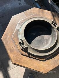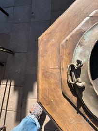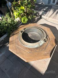 Struttura in legno massello a forma ottagonale con vasca centrale in ottone spesso, completa di maniglie originali.
