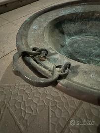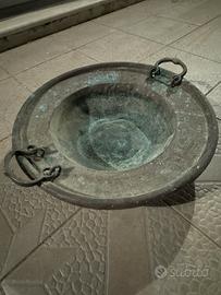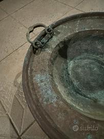 Antico Braciere Siciliano in Rame diametro 50cm. Pezzo di antiquariato che presenta i segni del pento e la sua affascinante patina.