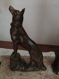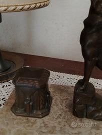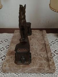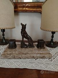 Bellissimo calamaio art deco' con piano in marmo. e figura di cane o lupo. Ottime condizioni. misura base: 26 x 15 cm. Altezza 18 cm. peso 2,700 kg.