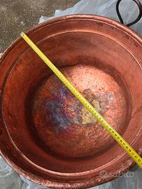 Vendo antico calderone grande in rame, originale antico dei primi anni 1900, con manici laterali in ferro.