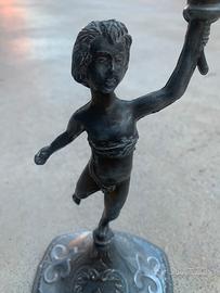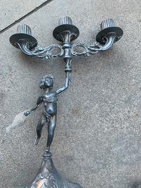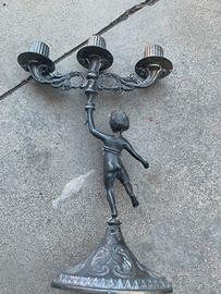 Robusto e antico candeliere in piombo o ottone per arredamenti vintage, antiquariato.. possibilità di spedire con tutto subito
