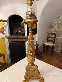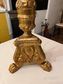 Antico candeliere ( probabilmente del 18 secolo) in legno dorato a foglia . Perfette condizioni . Elettrificato e finzionante
