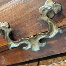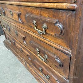 Antico cassettone detto Canterano, area bolognese appartenente al XVII sec . Realizzato con bugne a rilievo in noce massello e maniglie di bronzo. Serrature , chiave, chiodi ferramenta coevi . schiena e fodere in legno massello di pioppo. Stato buono in bellissima patina, sano . Non restaurato . mis Larghezza cm 160 x prof 67 h 111 .Oggetto dal grande fascino . STATO DEGLI OGGETTI : Trattandosi di oggetti antichi o comunque vintage originali è normale che essi possano avere dei piccoli difetti o usure presenti . Ricordiamo che questo tipo di oggetti NON sono paragonabile agli oggetti nuovi di FABBRICA !! Gli stessi vanno visti non come difetti ma garanzia della loro autenticità !! E’ sempre preferibile richiedere foto aggiuntive in caso di dubbi sullo stato. SPEDIZIONE : Trattandosi di mobili /oggetti Antichi e vista la delicatezza degli stessi , ci avvaliamo nella maggior parte dei casi di trasportatori specializzati e non corrieri espressi !!! Le consegne quindi potrebbero variare a seconda del luogo di destinazione ! Riusciamo comunque nel giro di 15 -20 gg lavorativi al massimo, dal momento del pagamento , a servire quasi tutte le località Nazionali . Euro 1500 Per info, acquisto o prenotazione tel 3772652318