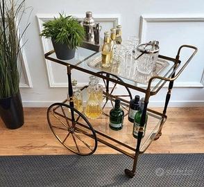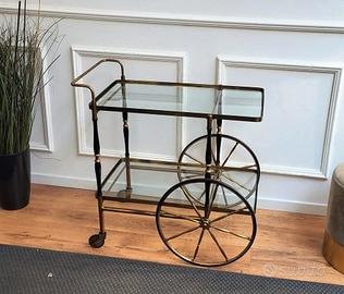 Fantastico carrello bar portavivande anni 50/60 in ottone con 2 ripiani in vetro