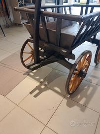antico carretto in legno usato per il trasporto del latte in montagna, ruote mozzi e snodo in metallo, restaurato, parti in legno tutte originali, ideale come porta vasi o oggetto decorativo per terrazze, portici, saloni, masserie , agriturismo. vendo per questioni di spazio, prezzo assolutamente non trattabile.