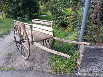 PREZZO TRATTABILE Antico carro in legno con ruote in legno e ferro, per informazioni contattare Marco Rossi al 3472830274. Nel caso, con una maggiorazione di circa 150 euro si può avere restaurato.