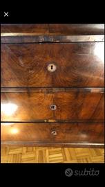 Antico cassettone in piuma di noce e piano marmo