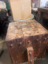 Ceppo da macellaio in legno molto pesante in perfetto stato Poco consumato nonostante gli anni Cm 37 di lato e cm 78 altezza