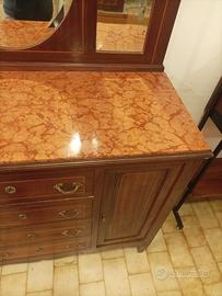 Comò con specchio e piano in marmo d'epoca stile Liberty anni 20/30 primo 900
