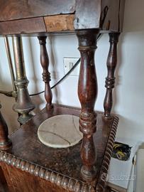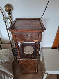 Antico comodino in noce con intarsi e piano in marmo, periodo 800'