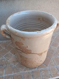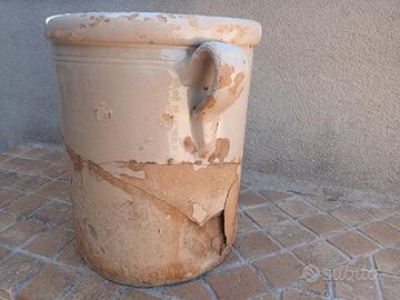 Vendo un ANTICO VASO RARO extralarge di terracotta smaltata del XIX secolo. Difetto esterno visibile in foto.