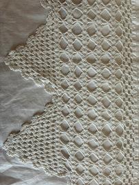 Queste tende vintage, Made in Italy, rappresentano l'essenza dello stile retrò più autentico. Realizzate in puro lino. Ogni centimetro è stato tagliato e cucito interamente a mano, come dimostrato dalla precisione dei bordi laterali rifiniti con estrema cura. Il corpo centrale della tenda è impreziosito da eleganti righe verticali a punto a giorno. Questa tecnica di sfilatura richiede una precisione millimetrica e dona al pannello una verticalità raffinata, creando un gioco di trasparenze geometriche unico. Il vero protagonista è però il bordo inferiore in pizzo ad uncinetto: Lavorazione: Una balza alta e complessa. Il bordo termina con una scenografica merlatura a punta, tipica dei corredi nobiliari del secolo scorso, che conferisce peso e un drappeggio impeccabile alla caduta della tenda. Stato di Conservazione e Carattere Vintage Le tende si presentano in buono stato conservativo. Come ogni vero pezzo d'epoca, portano con sé i segni del tempo: sono presenti dei piccolissimi forellini nel tessuto (visibili solo in controluce), che non ne compromettono l'estetica poiché si mimetizzano naturalmente tra le pieghe del lino durante l'uso. Questi dettagli non sono difetti, ma "certificati di autenticità" che testimoniano la storia e l'età del manufatto. Misurano cm 170 x 65 Valore d'Arredo Perfette per chi desidera ricreare un'atmosfera Shabby Chic, Provenzale o un autentico stile d'epoca, queste tende non sono semplici complementi d'arredo, ma pezzi di storia tessile. Ideali per finestre o portafinestre di ambienti che celebrano il recupero del bello e dell'artigianalità perduta. #tendeantiche #linopuro #madeinitaly #pizzoalluncinetto #fattoamano #vintagehome #antiquetextiles #homedecor #shabbychic #corredodepoca #puntoagiorno #artigianatoitaliano #arredovintage #tendaggi #handmadewithlove #italianvintage #linentapestry #brocante #interiordesign #antiquariato #handmadelace #vintagelinen #luxuryvintage #homestyling #tessutiantichi