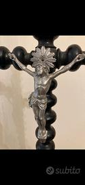 Antico Cristo in croce di legno finemente lavorata.Si adatta come elemento di arredo di notevole interesse.