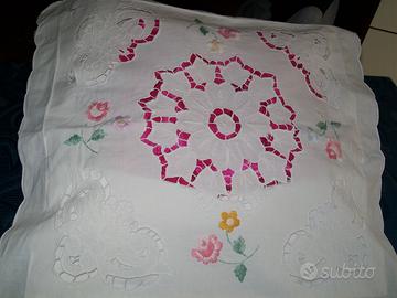 Antico bellissimo cuscino ricamato a intaglio, chiusura a tasca.