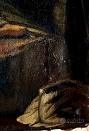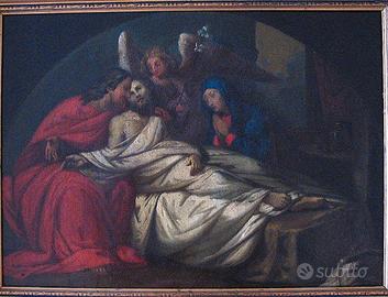 Antico Dipinto, deposizione di Cristo nel Sepolcro, XVIII° (700). Olio su tela, Pittore anonimo, restaurato.