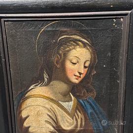 Antico splendido dipinto olio su tela fine XVI sec inizio del XVII sec con Maria Maddalena in meditazione . Il manto azzurro e la veste chiara dorata che la santa indossa si ritrovano spesso nei dipinti che la raffigurano e richiamano la sua passata ricchezza . Con cornice coeva dell’ epoca in legno massello di noce. Bellissima la patina .Mis 62 x 56 compresa la cornice. Solo la tela Cm 42 x cm 36 STATO DEGLI OGGETTI : Trattandosi di oggetti antichi o comunque vintage originali è normale che essi possano avere dei piccoli difetti o usure presenti . Ricordiamo che questo tipo di oggetti NON sono paragonabile agli oggetti nuovi di FABBRICA !! Gli stessi vanno visti non come difetti ma garanzia della loro autenticità !! E’ sempre preferibile richiedere foto aggiuntive in caso di dubbi sullo stato. SPEDIZIONE : Trattandosi di mobili /oggetti Antichi e vista la delicatezza degli stessi , ci avvaliamo nella maggior parte dei casi di trasportatori specializzati e non corrieri espressi !!! Le consegne quindi potrebbero variare a seconda del luogo di destinazione ! Riusciamo comunque nel giro di 15 -20 gg lavorativi al massimo, dal momento del pagamento , a servire quasi tutte le località Nazionali . Euro 1450 Per info, acquisto o prenotazione tel 3772652318