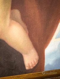 Antico Dipinto Olio su Tela Raffigurante Putto