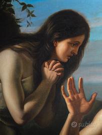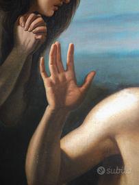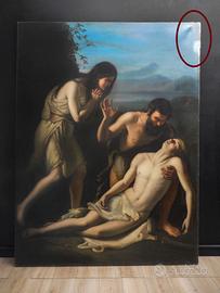 Antico Dipinto a Olio su Tela Raffigurante Adamo ed Eva con Abele Morto