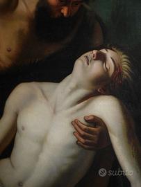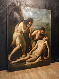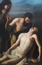 Importante dipinto di epoca 1872 realizzato a olio su tela, raffigurante una drammatica scena tratta dal racconto biblico della Genesi.