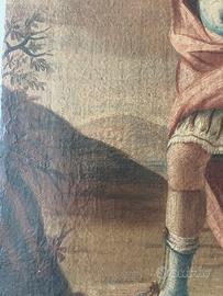 Dipinto olio su tela del 700 raffigurante s. Floriano. Misura cm 35x44.5. Il dipinto è stato reintelato .