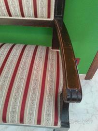 Vendo divanetto a 3 posti liberty originale dei primi del '900, in condizioni molto buone, recentemente tappezzato ad arte con tessuto jacquard a righe in stile Biedermeier ;
