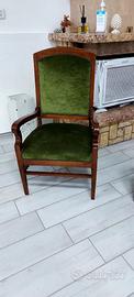 salottino in stile liberti , compreso di divano 2 poltrone e un tavolino con vetro martellato originale , tutto in mogano massello tappezzato con velluto verde , tutto restaurato e tappezzato.