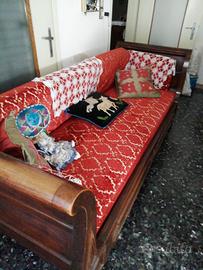 Vendo Antico divano in legno a barca Usato buono. Lunghezza 2.15, altezza 90 cm, larghezza 85 cm. preferibile ritiro a mano