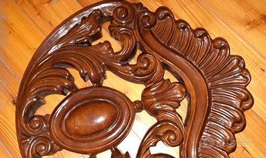 Decorazione ornamentale in legno intagliato, ("applique" o "decalcomania"), utilizzata per abbellire mobili, pareti, porte o altri elementi d'arredo.